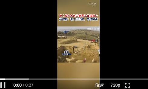 【老人穿红衣进羊圈被羊顶撞身亡】近日,陕西榆林。网传一段老人穿红衣服进羊圈被羊顶撞身亡的视频引关注。