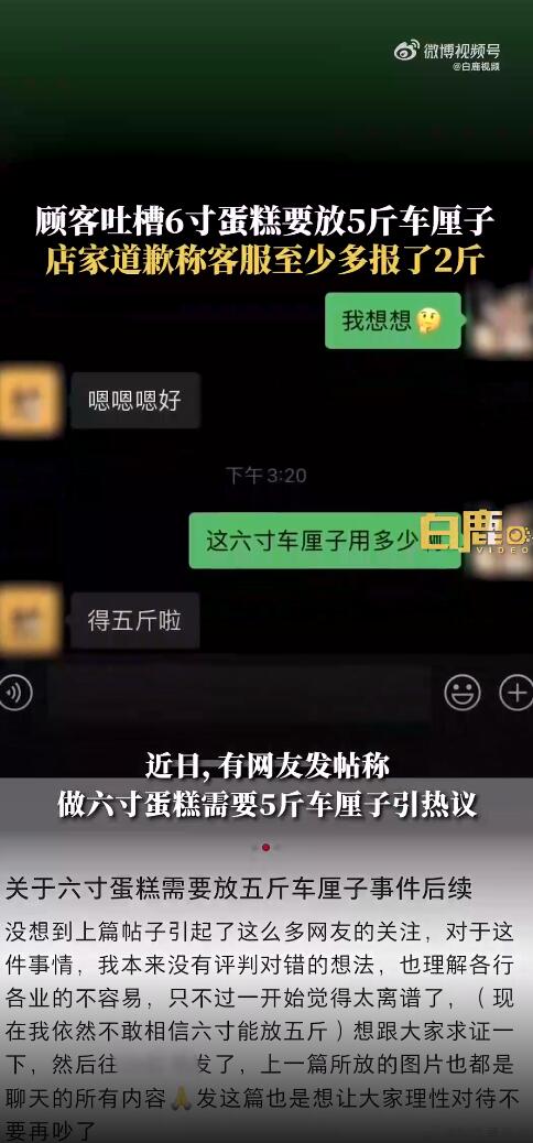 6寸蛋糕用5斤车厘子店家道歉