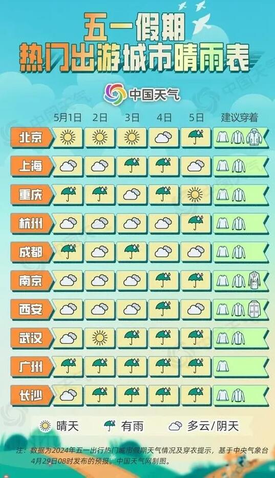 热门城市五一出游晴雨表出炉 这些城市降雨连连